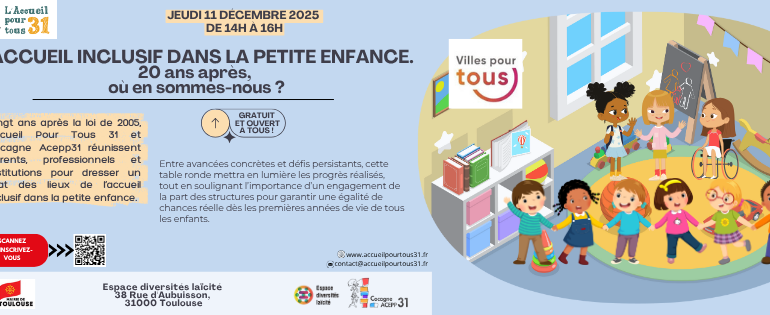 Table ronde « L’accueil inclusif dans la Petite Enfance. 20 ans après, où en sommes-nous ? » Jeudi 11 décembre 2025 de 14h à 16h à l’Espace diversités laïcité