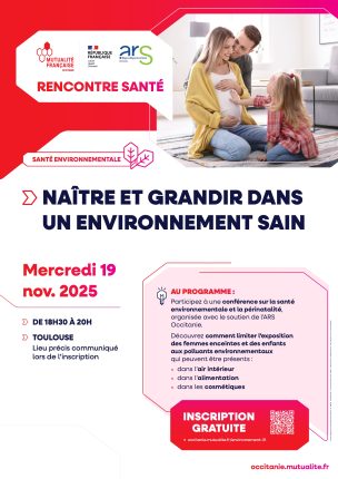 Conférence « Naître et grandir dans un environnement sain » le mercredi 19 novembre 2025 de 18h30 à 20h à Toulouse.